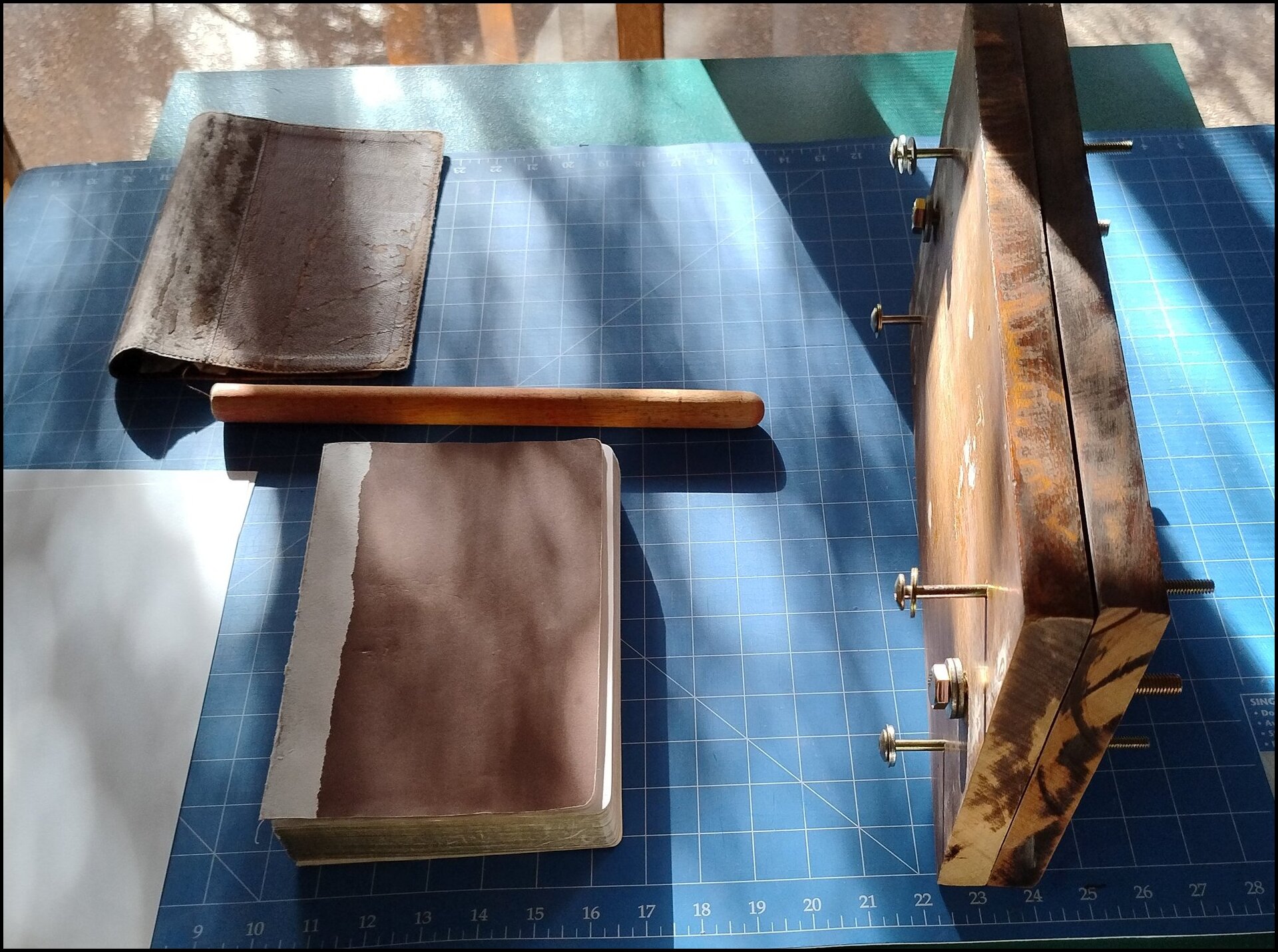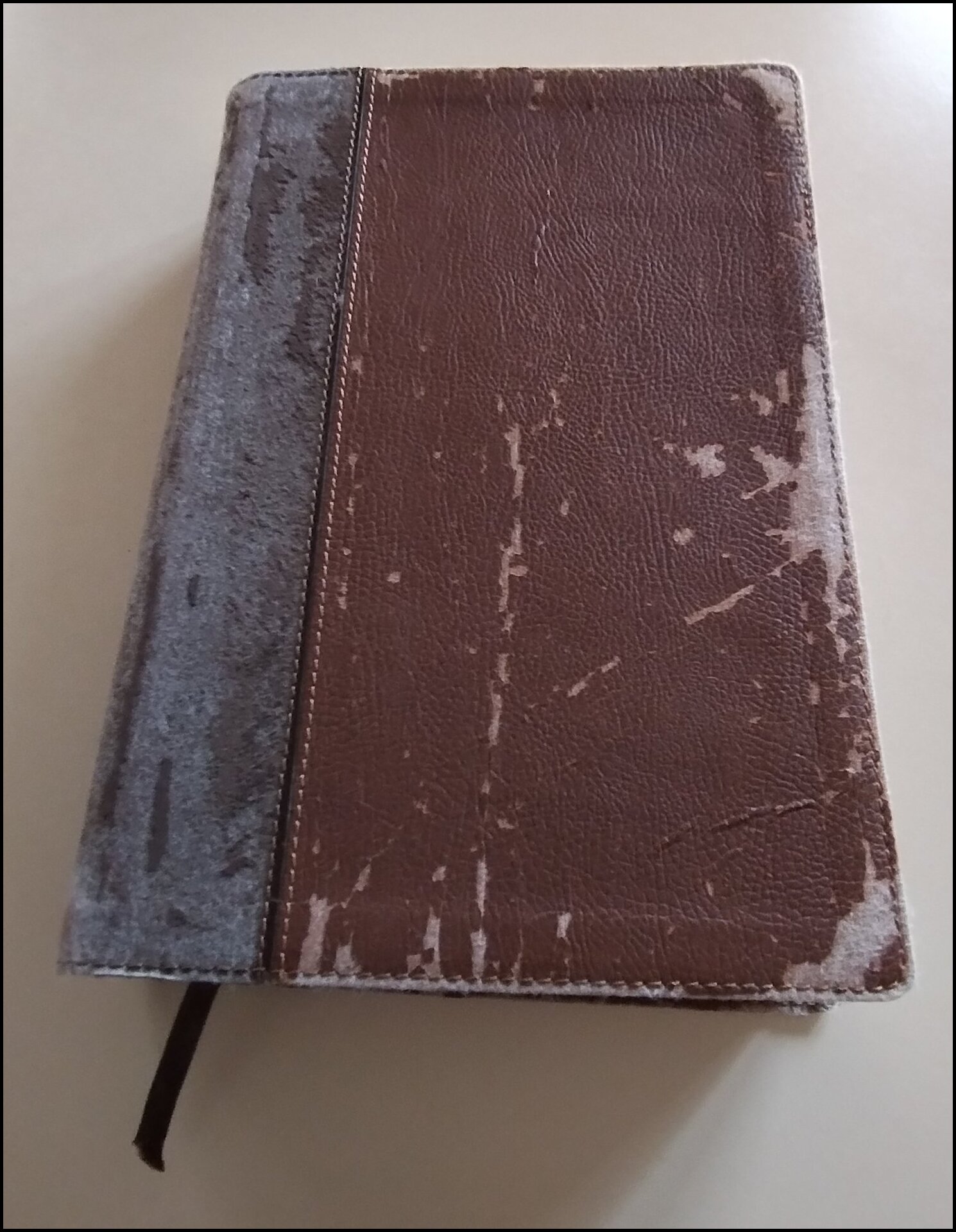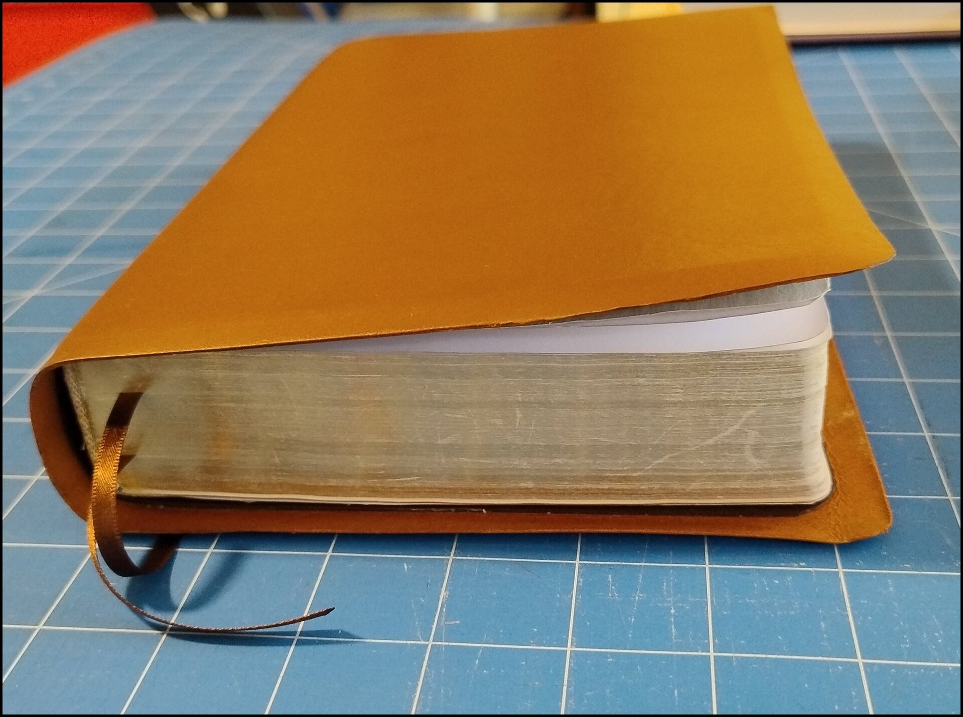 Well, Bible rebind #1 is complete. I completed the process over about six days doing a small range of tasks each day. The process wasn’t as difficult as I imagined it would be. It was a matter of proceeding a step at a time carefully measuring, cutting, glueing, smoothing. Rinse and repeat.